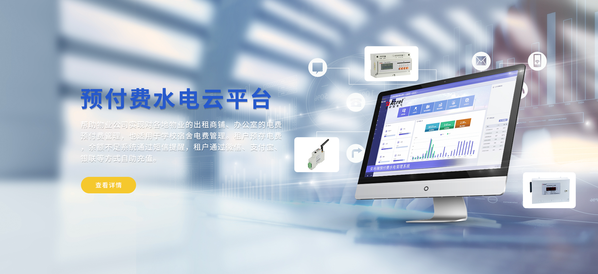 安科瑞提供的解決方案包括Acrel-EIoT能源物聯網云平臺變電所運維云平臺、安全用電管理云平臺、環保用電監管云平臺智慧消防云平臺、能源管理云平臺、工業企業能源管控平臺、遠程預付費云平臺、餐飲油煙監管云平臺、電動汽車/電瓶車充電樁收費管理云平臺、電力監控/無線測溫系統、電能質量治理系統、電氣火災監控系統、消防設備電源監控系統、防火門監控系統、應急照明和疏散指示系統、智能照明控制系統、醫用隔離電源絕緣監測系統等,幫助用戶實現能源智能化、可視化、精細化管理,提高用能效率和用能安全,為企業節能降耗和實現能源數字化建設提供數據服務。